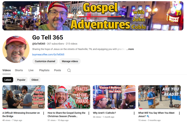My passion/calling/burden is for proclaiming the Gospel around the Nashville, TN area. Yes, very odd indeed, but very much needed. I go out on the streets whenever I can to preach and talk with people about Jesus Christ. You may see me on Broadway (usually near 2nd or 3rd Ave.), outside the arena, near the stadium or at other outside events– wherever there are people who need Jesus (which is everywhere). If you are interested in learning about how to share the Gospel or are an evangelist in the area (and I don’t know you), please contact me.
